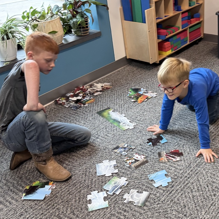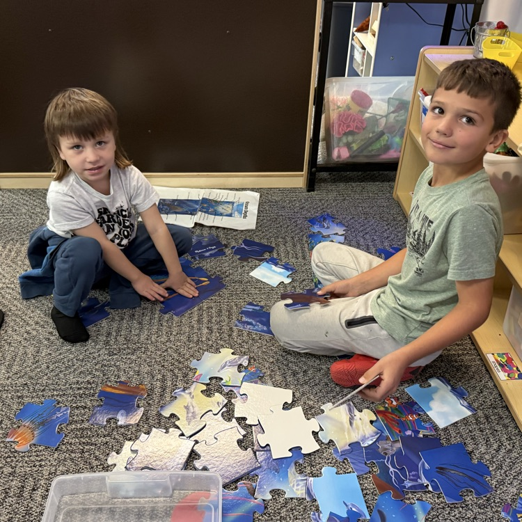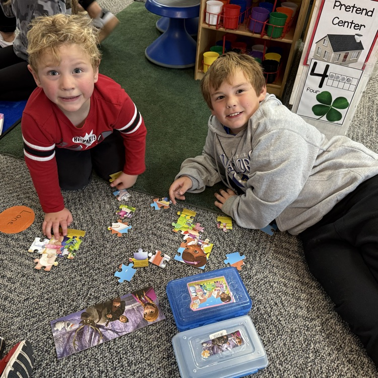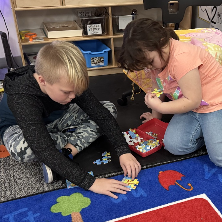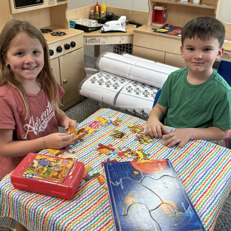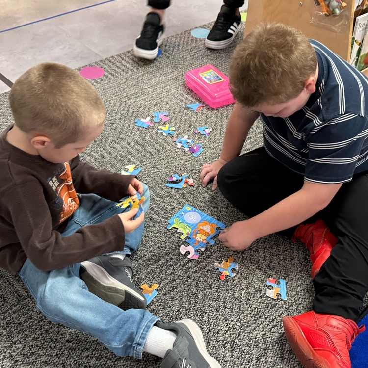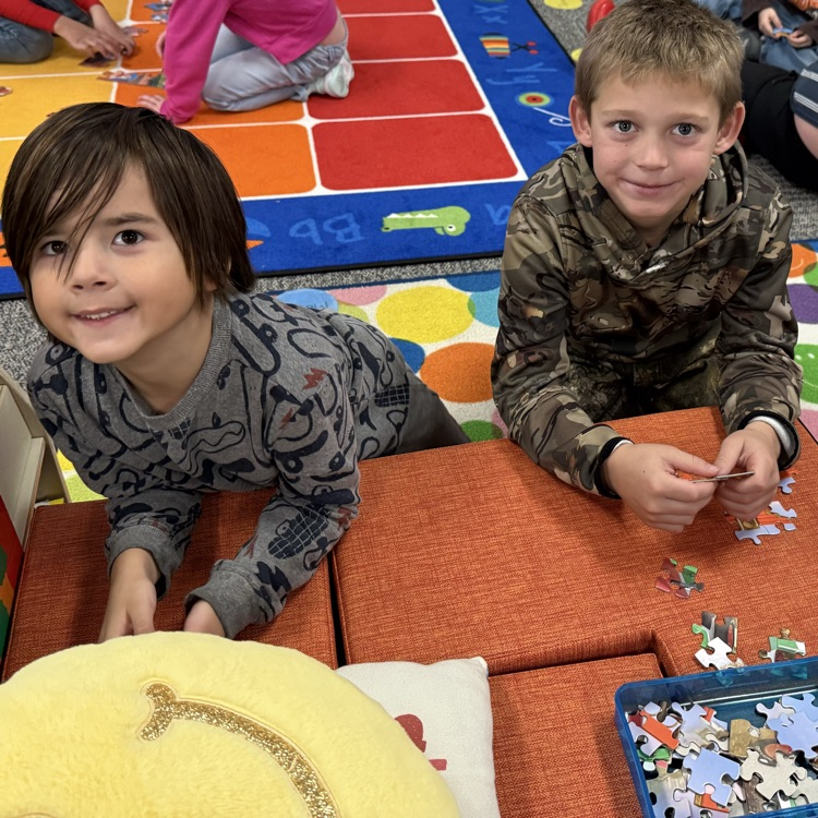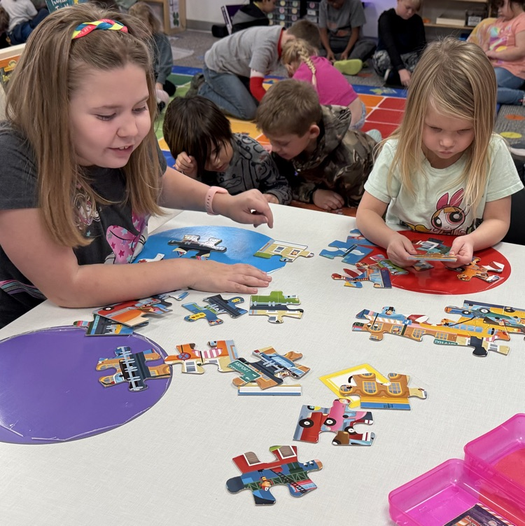 The third graders and second year preschoolers had a great time working on puzzles today during their November meet up!