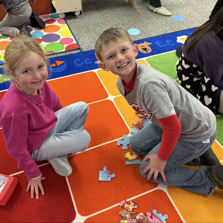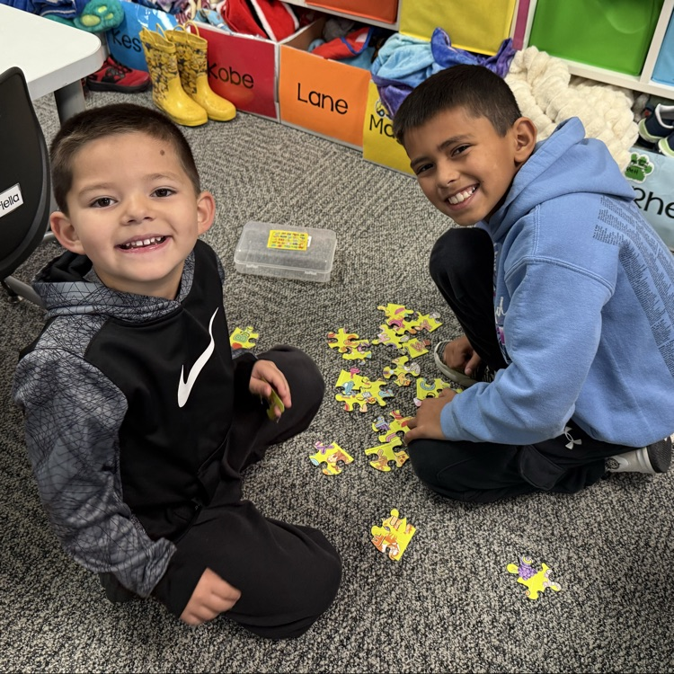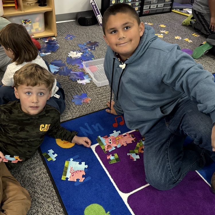 Third graders, preschoolers, and puzzles! 🧩💛🖤