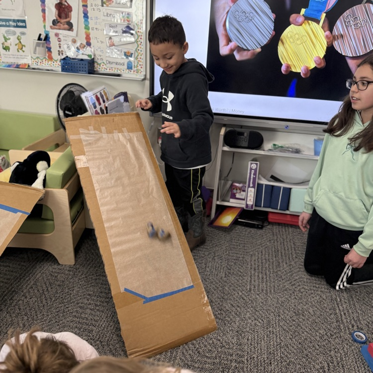 Day 2 of Olympic fun! The second year preschoolers and the 4th graders created bobsleds and ramps, as well as made Olympic gold medals. What is your favorite Olympic event?